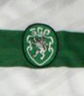 Note-se ainda que o padrão do tecido do equipamento principal veio em duas variantes, uma, a mais comum, com listas diagonais, e outra com listas verticais (agrupadas em grupos de três, representando mais uma vez a Adidas). As camisolas de jogo que conheço apresentam todas a primeira possibilidade, mas não quer dizer que não haja também com a segunda. O equipamento do Sporting é um poço de mistérios, estão constantemente a aparecer surpresas.
