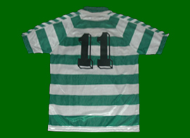 Esta foi a época em que a Hummel introduziu equipamentos Stromp que não são realmente equipamentos Stromp. A metade esquerda, verde, é feita de risquinhas verticais verdes mas de tom diferente. Isto é diferente do que aconteceu por ex. em 1984/85 com a Le Coq Sportif, em que a aparente diferença de cor verde era devida apenas à disposição do tecido. O pior é a metade direita, que deveria ser branca, mas que na realidade é feita de risquinhas verticais brancas intercaladas com risquinhas verticais verdes. O efeito é bonito, mas isto não é um equipamento Stromp.