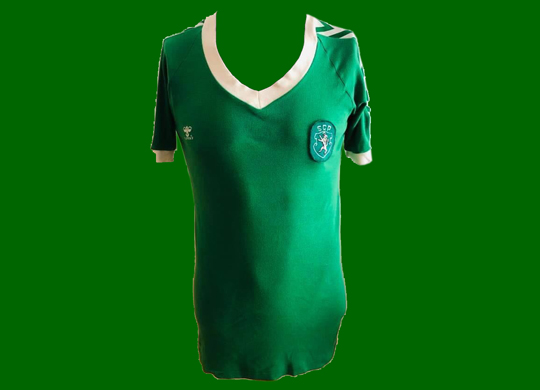 1987/88. Camisola Hummel alternativa verde, sem patrocínio. Usada em dois jogos, um particular e um do Campeonato. Provavemente do Oceano
