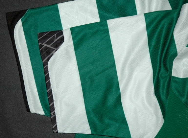 Para além disso, as camisolas listadas não tinham listas. Nos lados a interrupção, também num tecido todo verde diferente do resto da camisola, era enorme. Nas costas o "buraco verde" sem listas era também enorme, e em equipamentos tamanho L, havia uma única "lista" branca ao fundo. Na prática, era uma camisola verde, com rectângulos brancos dispersos num padrão mais ou menos regular, interrompido nas laterais, no pescoço, e nas costas. Este template decididamente não resultou para o Sporting.