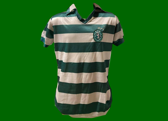 1980/1981. Equipamento Puma de jogo, do Manoel. Usado num único jogo, contra o Varzim a 9 de Novembro de 1980. É o primeiro modelo da Puma usado pelo Sporting, ou seja é a primeira camisola do Sporting com marca de fabricante visível